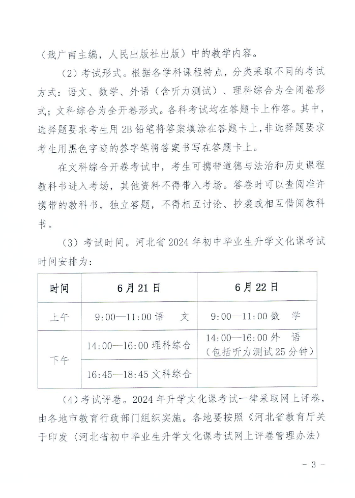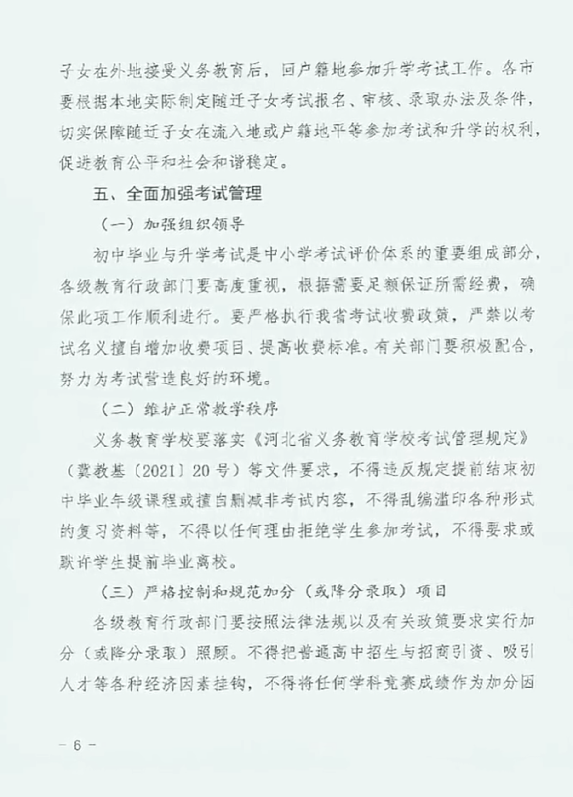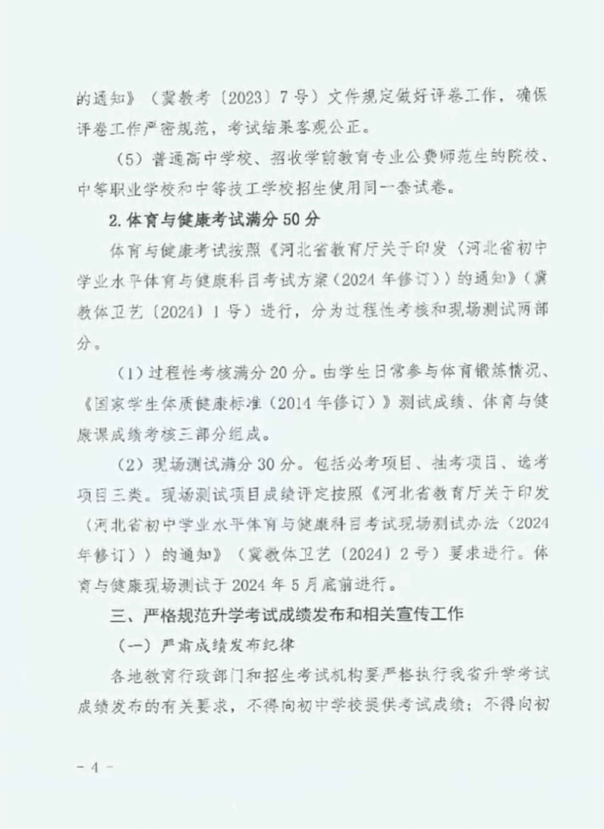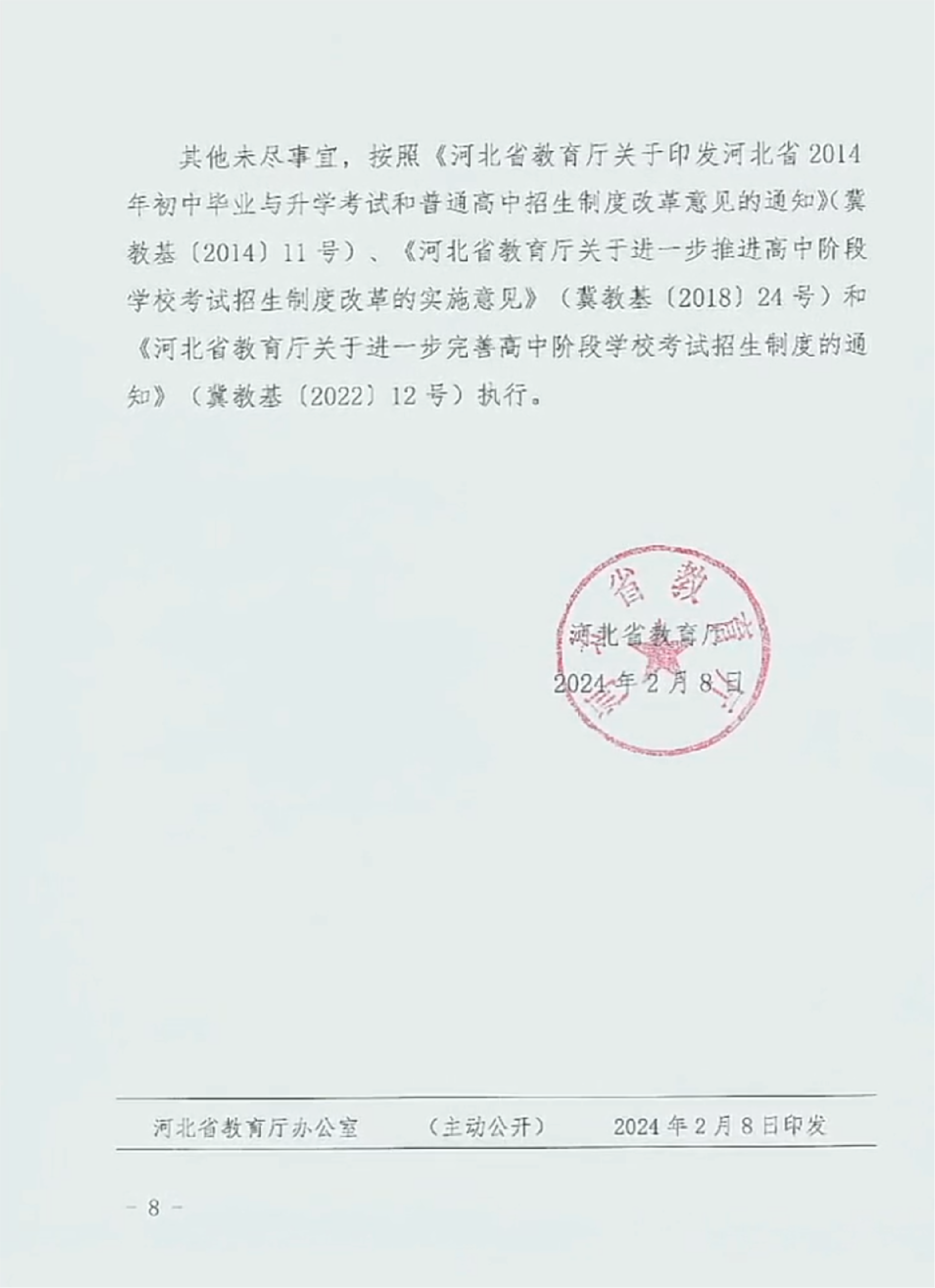 近日,河北省教育厅发布《关于做好2024年初中毕业与升学考试工作的通知》。